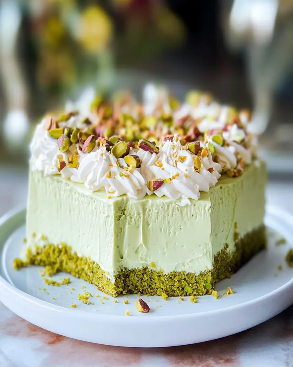 A deliciously rich and creamy cake made with pistachios, perfect for any occasion.