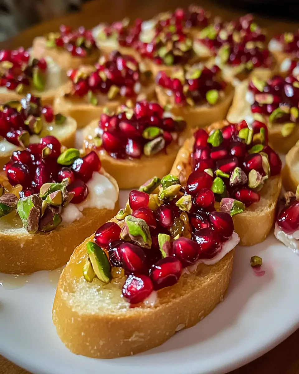 Delicious and elegant pomegranate pistachio crostini, perfect for entertaining.