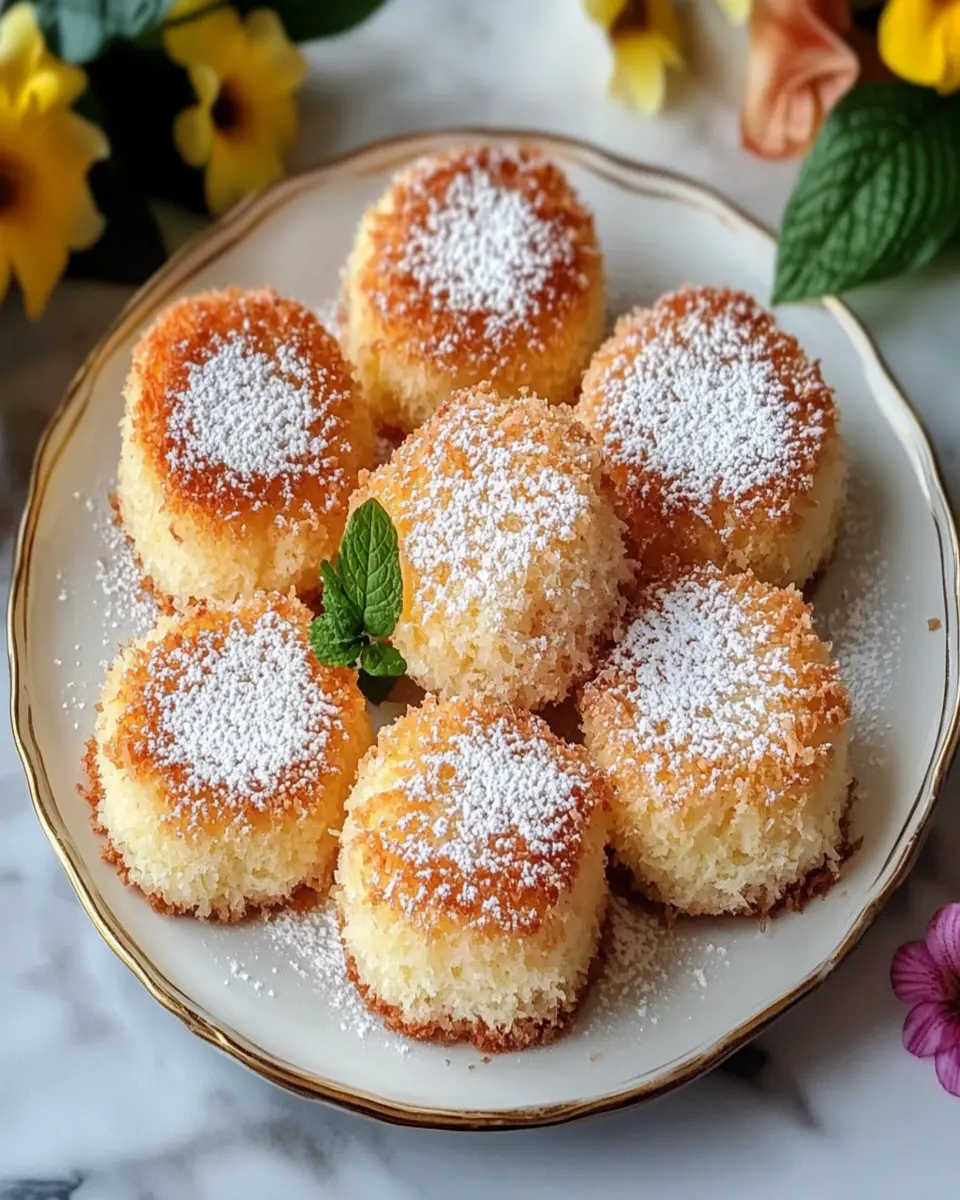 Deliciously sweet and moist Portuguese coconut cakes, perfect for any occasion.