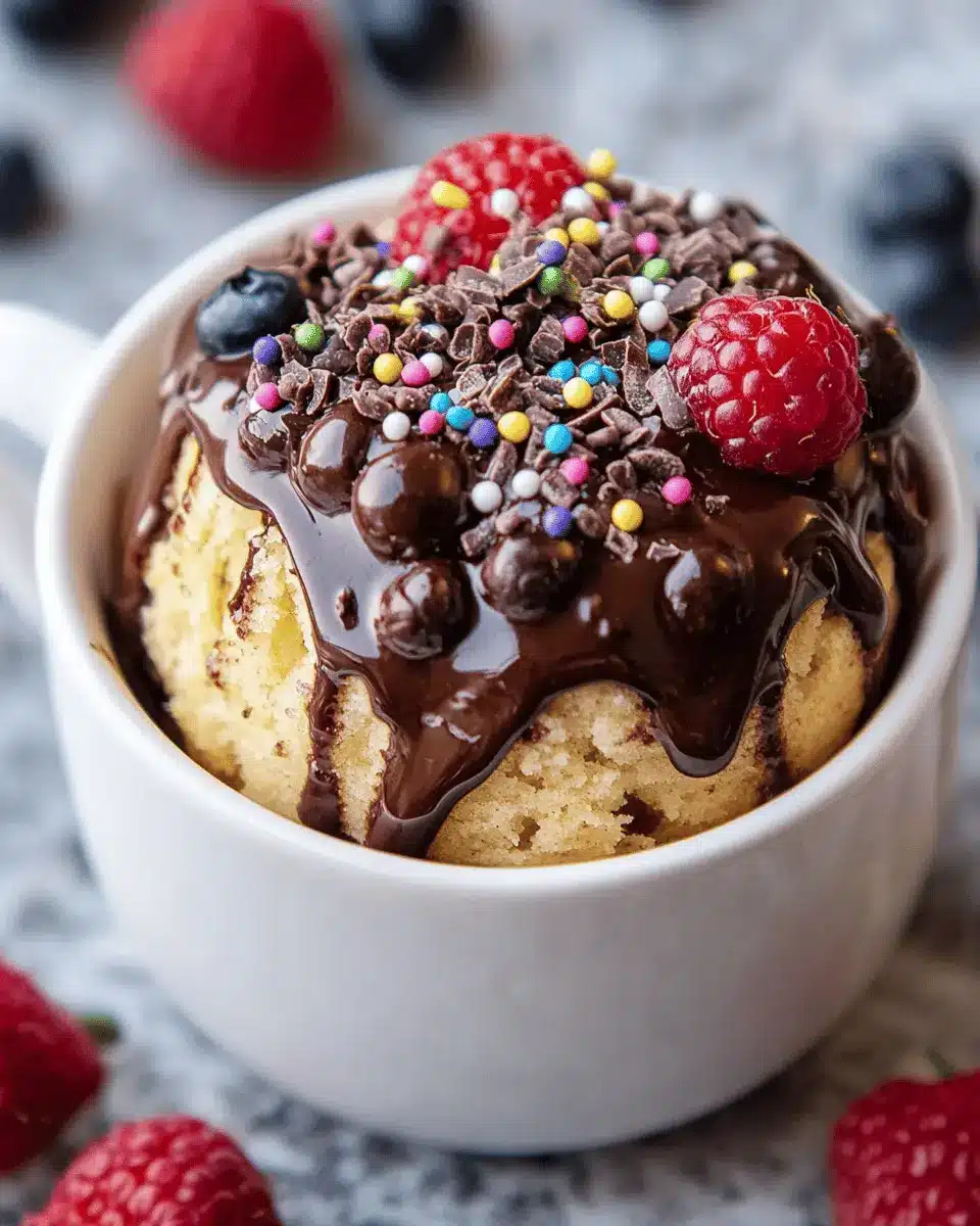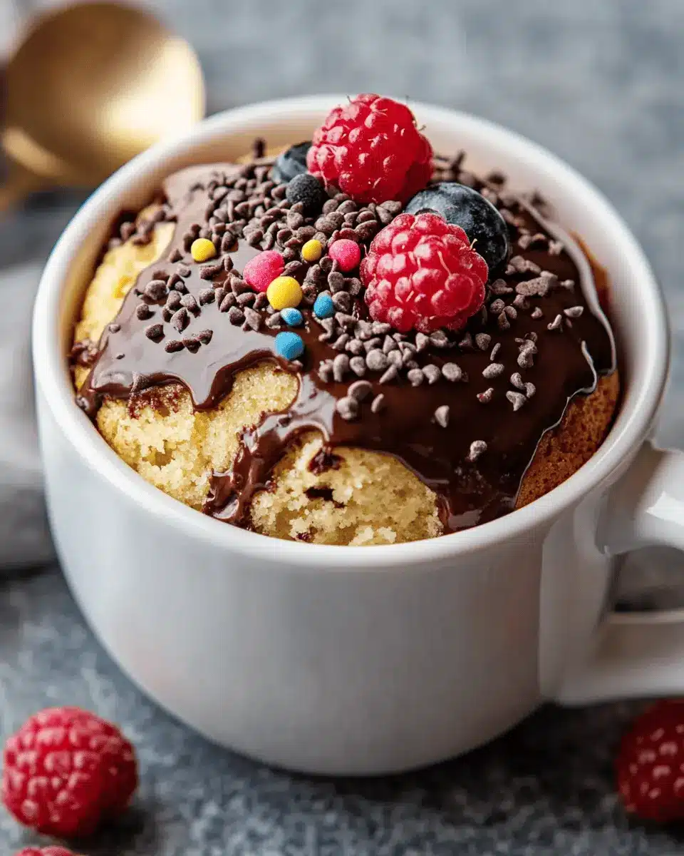 Fresh fruit is another fantastic addition that brings brightness and freshness to your Protein Mug Cake. Slices of banana, strawberries, or a handful of blueberries not only enhance the flavor but also add a nutritional boost, making your dessert even more wholesome.