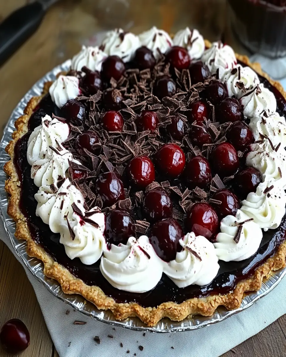 In summary, the Rich & Creamy Black Forest Cherry Pie is a delightful dessert that brings together rich chocolate, tangy cherries, and a fluffy whipped cream topping. Its no-bake method makes it perfect for young professionals and homemade-food lovers who are time-pressed yet want to impress at gatherings. By following this recipe, you can create a stunning dessert that not only tastes incredible but also looks beautiful on any table. Don’t forget, this pie can be prepared a day in advance, allowing the flavors to meld for an even more intense experience. So, gather your ingredients, follow the steps, and treat yourself and your loved ones to a slice of this heavenly pie. Enjoy, and be sure to save, share, or comment on your experience!