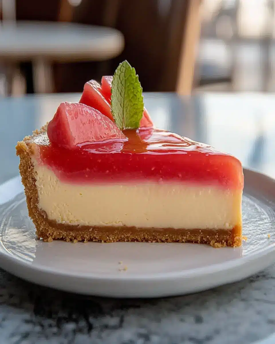 A dollop of freshly whipped cream can elevate your dessert experience. Top each slice of cheesecake with whipped cream and a sprig of mint for a refreshing touch. This simple addition not only enhances the flavor but also gives your dessert an elegant look, making it perfect for gatherings.