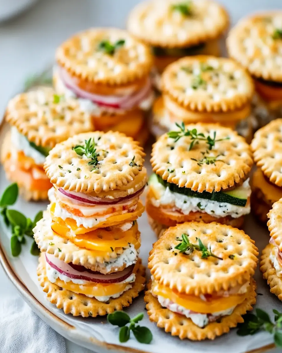 Ritz crackers are the star of this recipe, offering a buttery, crispy base that contrasts perfectly with the creamy fillings. Their light texture makes them an ideal choice for creating finger sandwiches that are easy to eat and enjoyable for all.