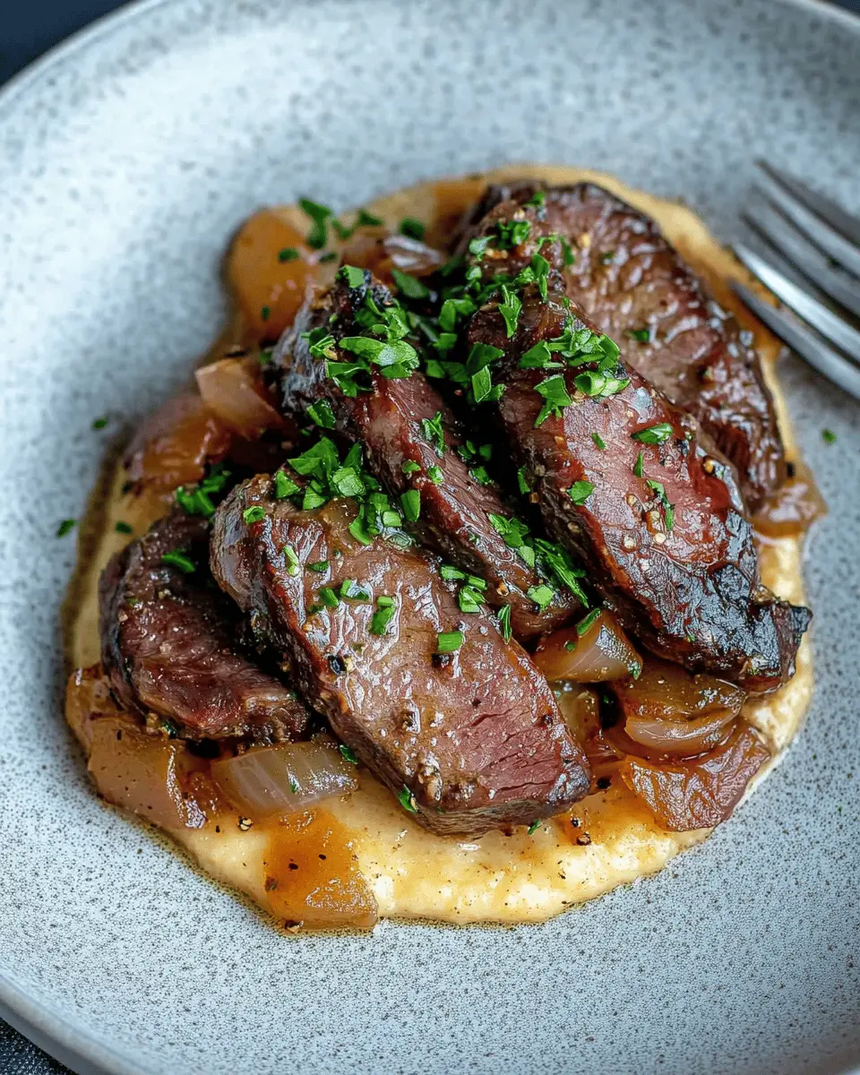 For the best eating experience, serve the dish immediately after cooking. The buttery onion glaze will enhance the dish’s richness, but it’s best enjoyed fresh. Consider pairing it with a side of sautéed vegetables or creamy mashed potatoes to balance the flavors and create a complete meal.