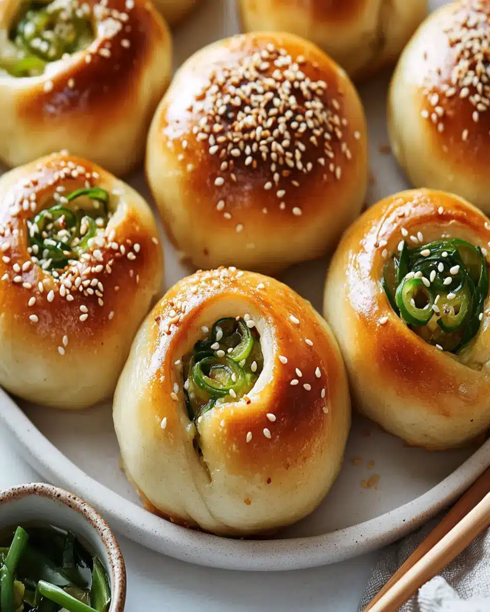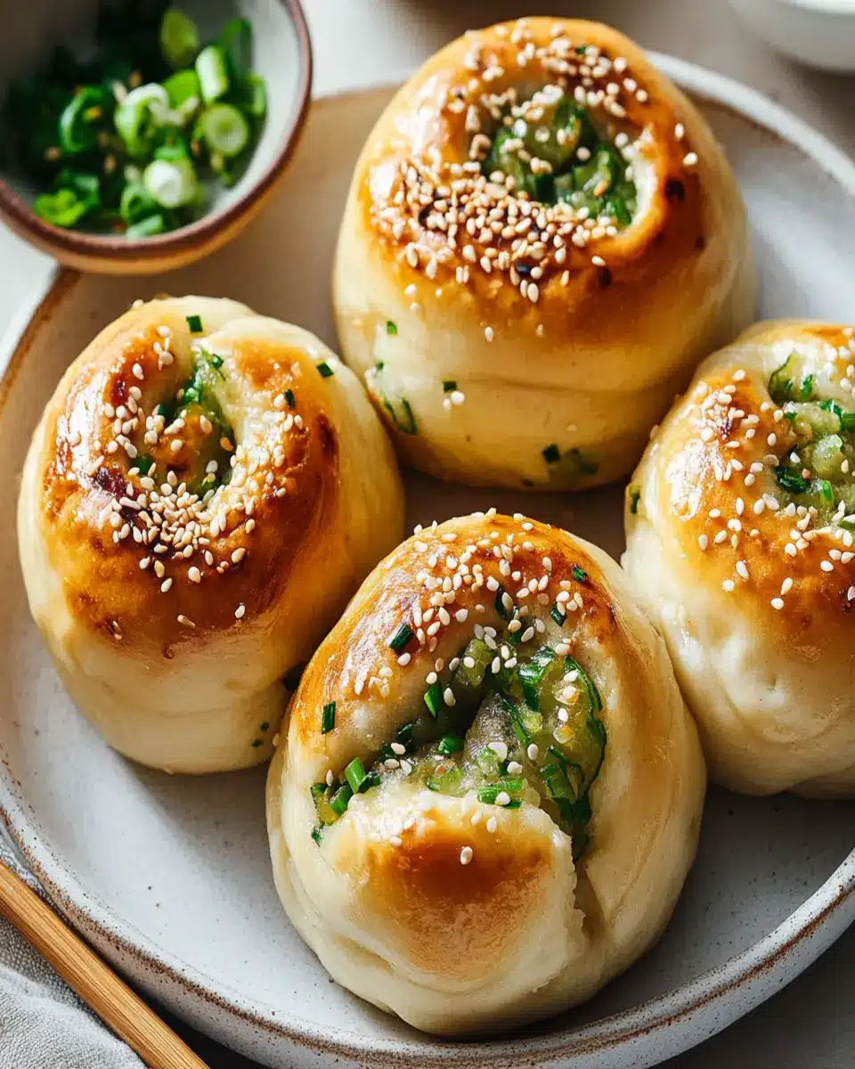 Deliciously soft and fluffy buns filled with fragrant scallions and topped with sesame seeds, perfect for any occasion.