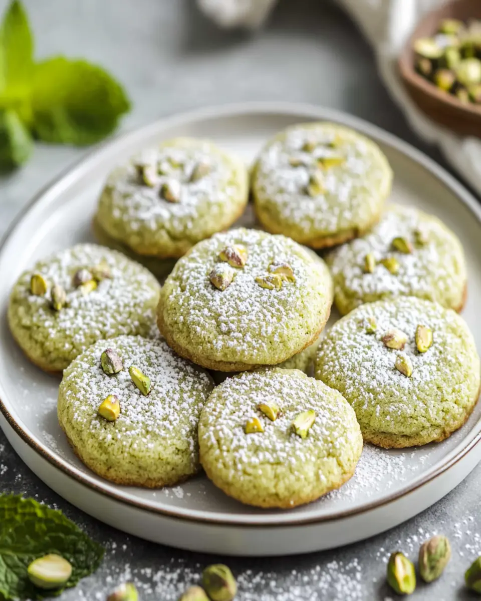 What sets these cookies apart is their unique flavor combination. The pistachio pudding mix infuses each cookie with a rich, nutty essence, while the chopped pistachios add a satisfying crunch. Paired with sweet white chocolate chips, each bite is a delightful experience. Whether enjoyed with a cup of coffee or shared with friends, these cookies are sure to impress!
