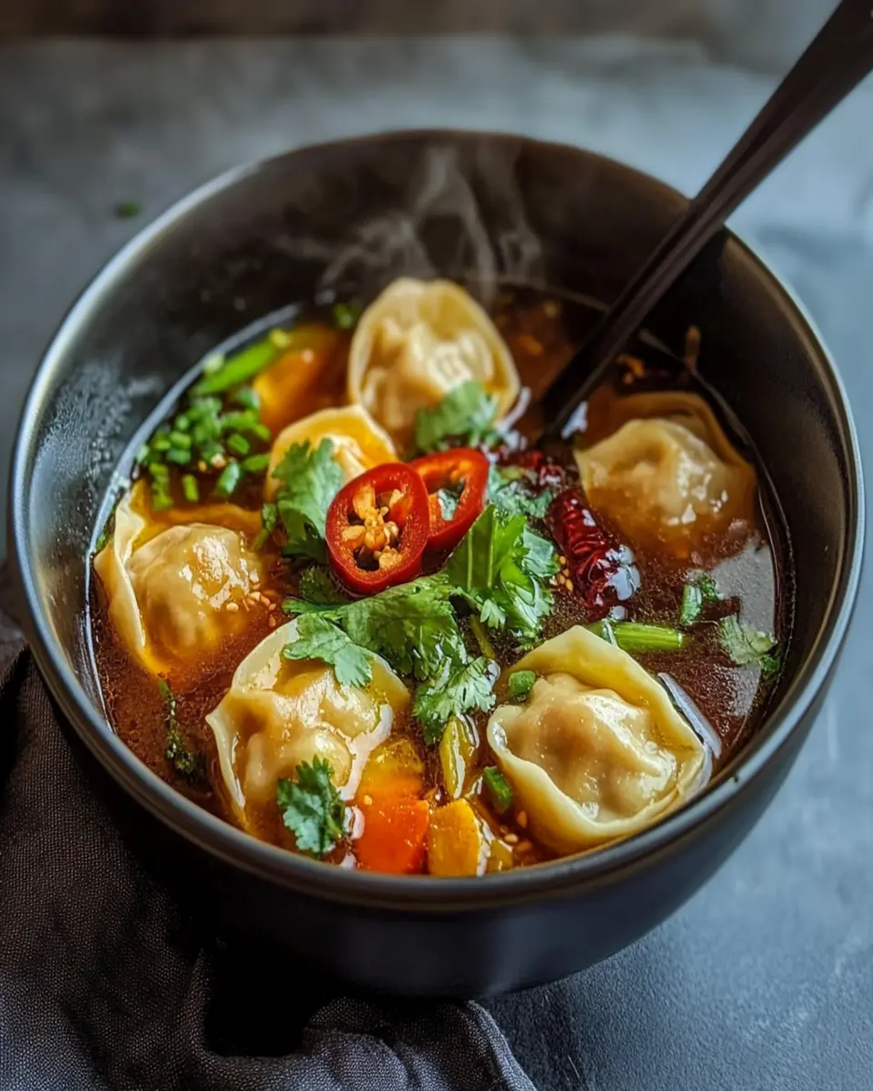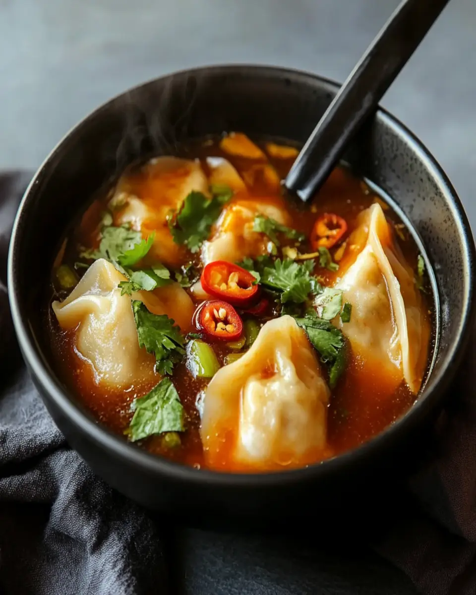 In conclusion, this spicy dumpling soup is more than just a meal; it’s a delightful experience that warms both the body and soul. With its rich flavors and comforting ingredients, it’s perfect for young professionals and homemade-food lovers looking for a quick yet satisfying dish. Whether you’re enjoying it on a cold evening or sharing it with friends and family, this recipe is sure to become a favorite in your kitchen. So gather your ingredients, follow the steps, and indulge in a bowl of this delicious soup. Don’t forget to cook, save, share, and comment on your experience! Enjoy!