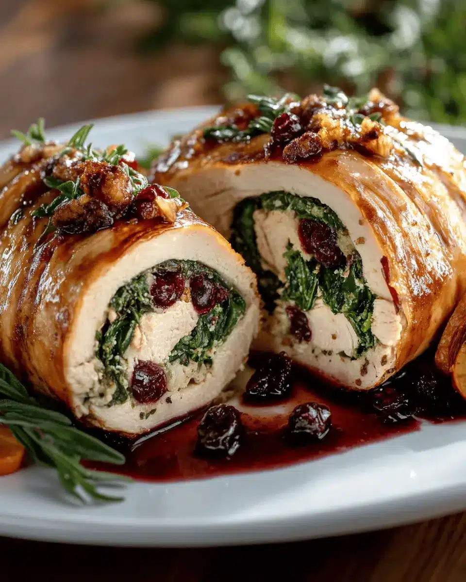 Consider adding fresh herbs like thyme or basil to the spinach mixture for an aromatic boost. These herbs can elevate the overall flavor, making your Stuffed Turkey Roulade with Spinach & Cranberry even more delightful.