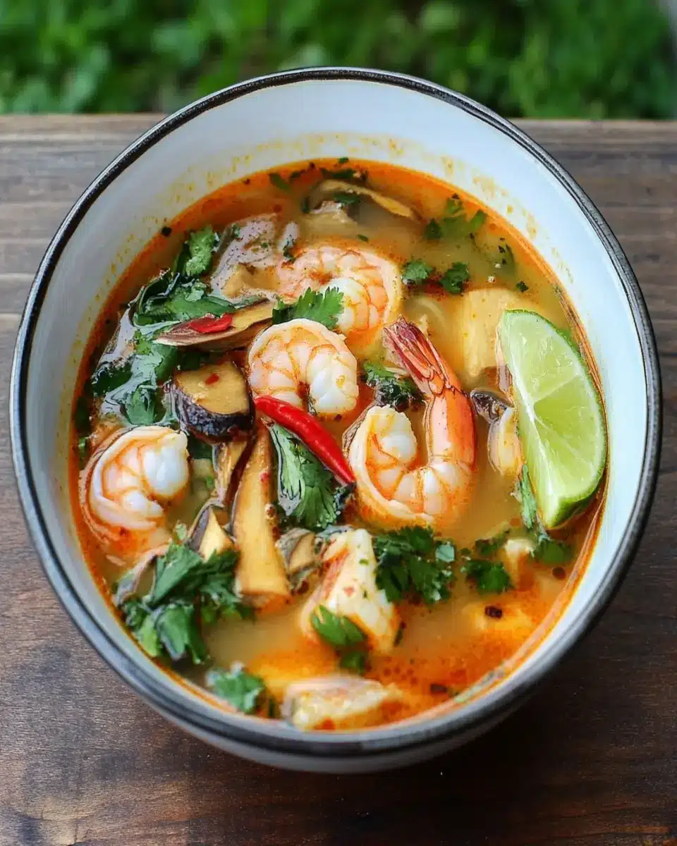 Thai Tom Yum Soup is a delightful blend of flavors that warms your heart and excites your palate. This recipe is not just about food; it’s an experience that transports you to the bustling streets of Thailand with every spoonful.