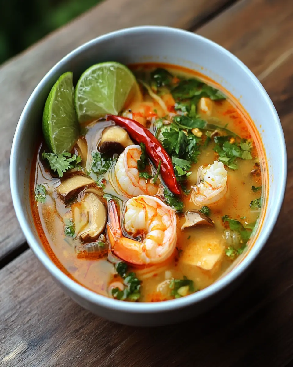Thai Tom Yum Soup is a delightful and vibrant dish that captures the essence of Thai cuisine with its bold flavors and aromatic ingredients. This soup is not just a meal; it’s an experience that can transport you to the bustling streets of Thailand with every spoonful.
