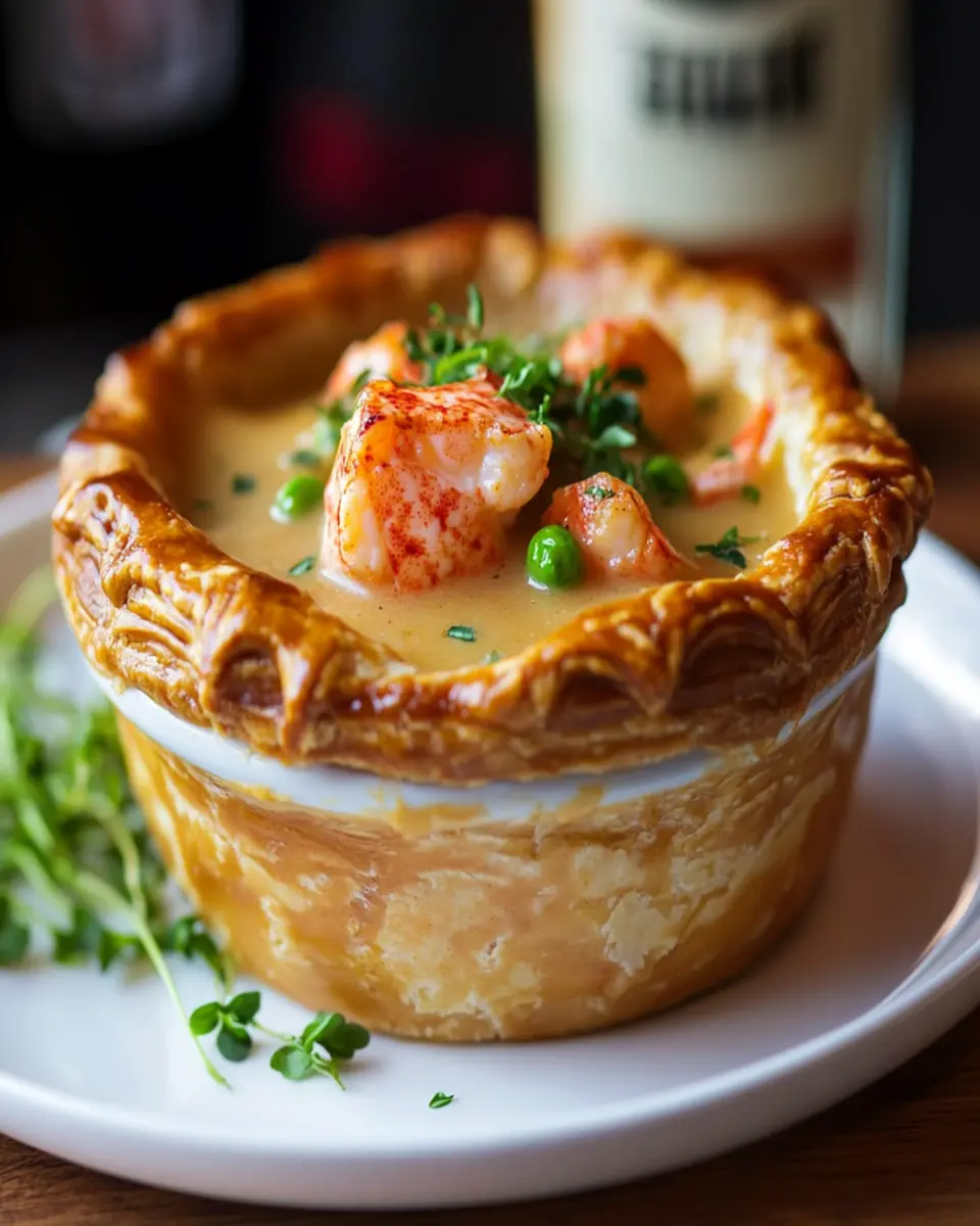 A delightful and creamy lobster pot pie loaded with the rich flavors of fresh lobster, topped with a flaky crust.