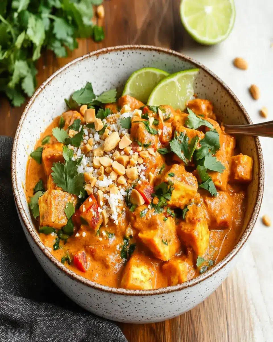 Tofu and Sweet Potato Peanut Butter Curry is a delicious and creamy dish that combines firm tofu, sweet potatoes, and peanut butter, all simmered in a rich coconut milk curry sauce. It’s a satisfying meal that is both nutritious and flavorful, making it a favorite among vegetarian and vegan diets.