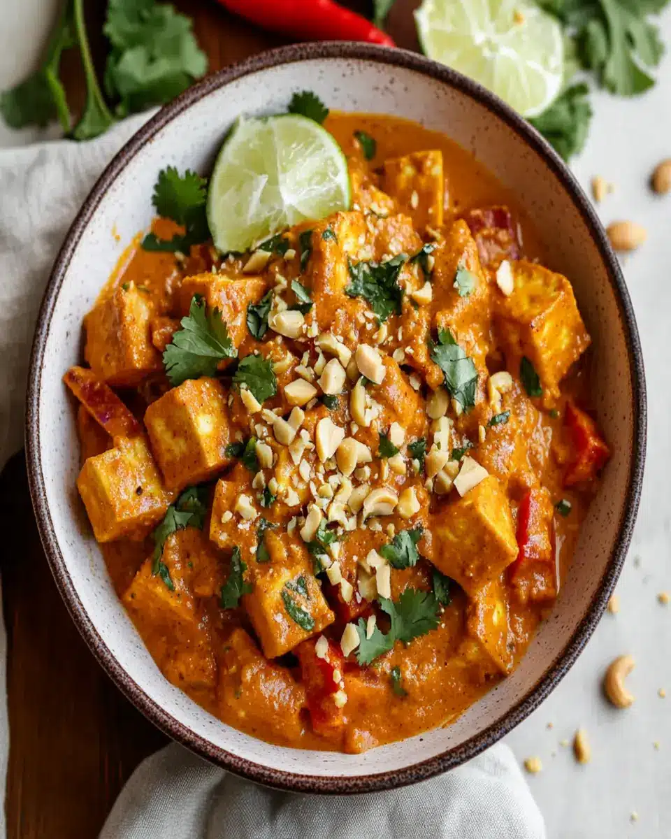 Firm tofu is the star of this dish, providing a protein-packed base that absorbs the rich flavors of the curry. Its texture holds up beautifully during cooking, making it a satisfying addition to the creamy sauce.
