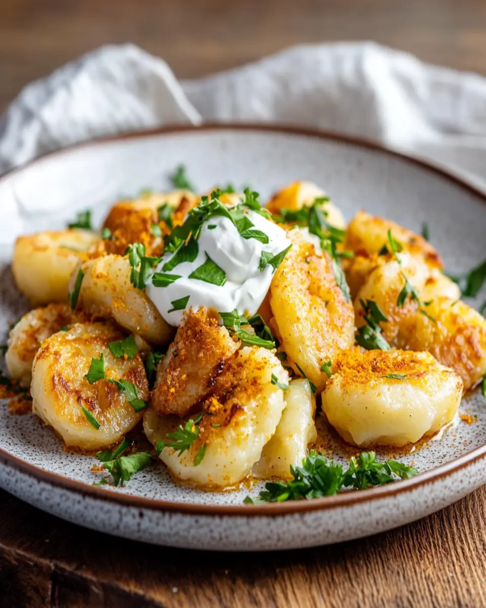 These dumplings embody the essence of comfort food, satisfying your cravings with their hearty potato filling wrapped in a light dough. As you serve them with a dollop of sour cream, the creaminess complements the flavors beautifully, making every bite a delightful journey. Plus, they’re a great way to practice your cooking skills while impressing your guests.