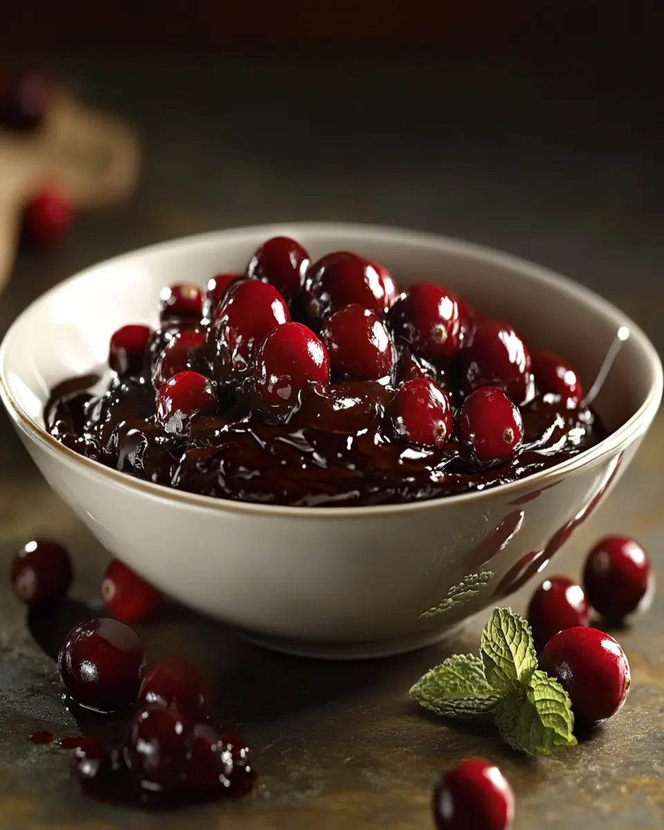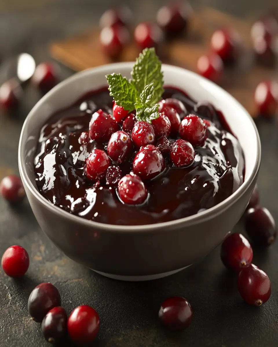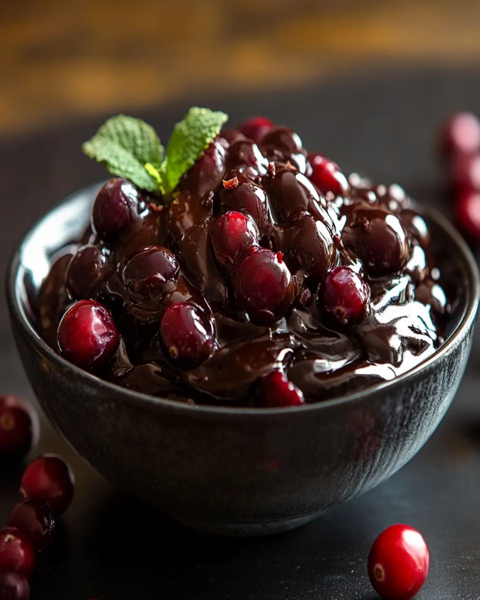 A delicious twist on cranberry sauce, enriched with chocolate, perfect for festive occasions.