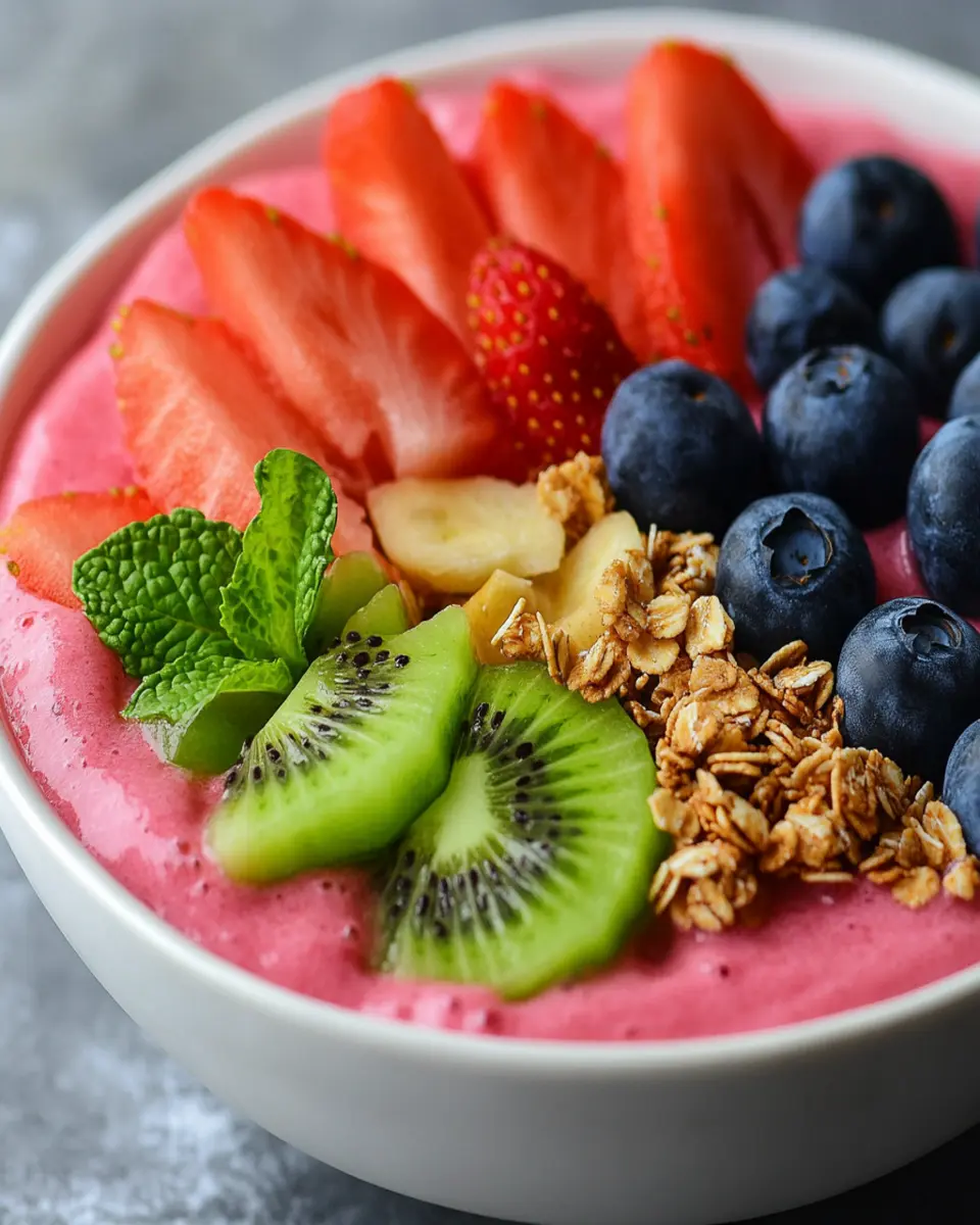 To make your Watermelon Smoothie Bowl even more visually appealing, use a colorful assortment of toppings. Layering fresh fruits like berries or kiwi on top, along with a sprinkle of granola and sliced almonds, can transform your bowl into a vibrant masterpiece. This not only enhances the visual appeal but also adds a variety of textures and flavors.
