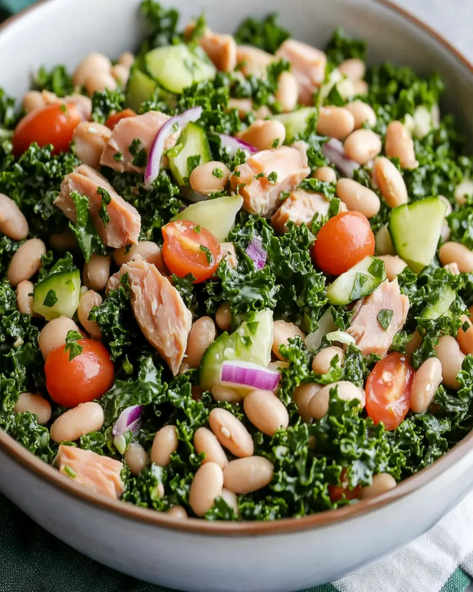 This salad is rich in protein and fiber, making it a filling choice that supports muscle health and digestion. The combination of tuna and white beans provides essential omega-3 fatty acids and nutrients, while kale adds vitamins A, C, and K, promoting overall wellness.