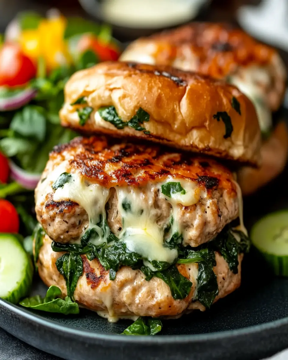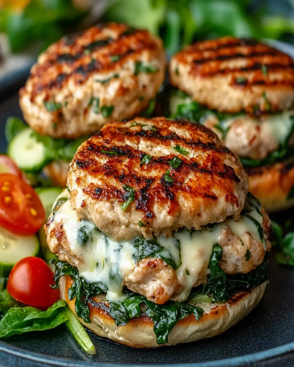 In summary, these White Cheddar Spinach Chicken Burgers are the perfect solution for a quick, flavorful meal that doesn’t compromise on nutrition. With a delightful blend of ground chicken, fresh spinach, and creamy white cheddar, these burgers are not only delicious but also provide a healthy dose of protein and essential nutrients. Whether you enjoy them grilled or pan-fried, they are versatile enough to suit any occasion. So why not give this recipe a try? Cook, share, and savor these tasty burgers with friends and family for a satisfying meal that everyone will love!