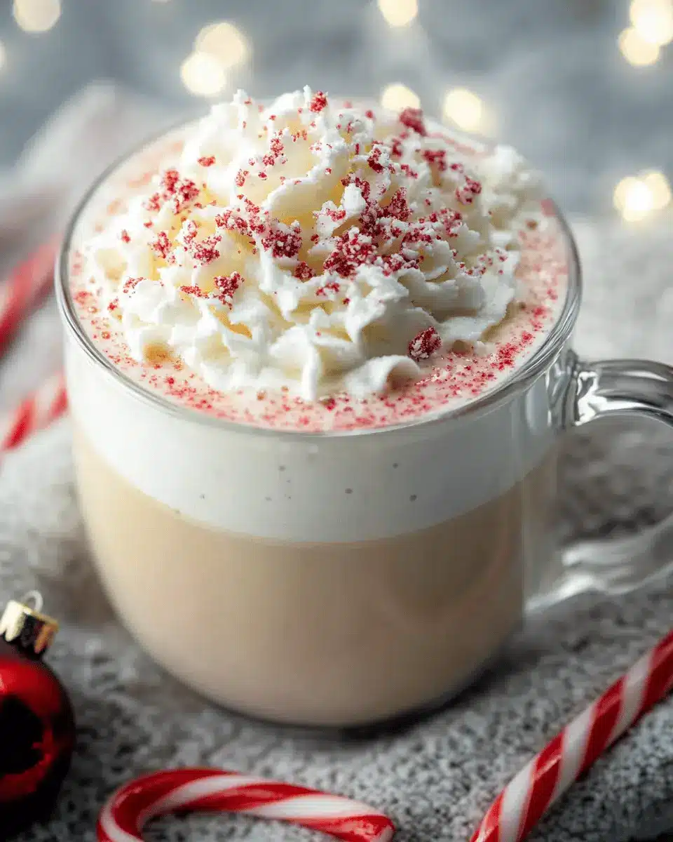 The White Chocolate Candy Cane Latte is a festive beverage that combines rich white chocolate, espresso, and peppermint, topped with whipped cream and crushed candy cane. It’s a delightful twist on a classic latte, perfect for the holiday season.