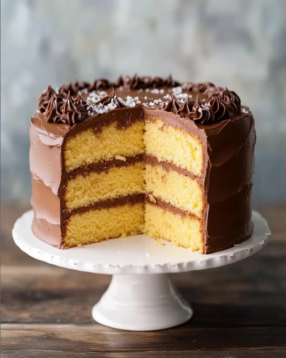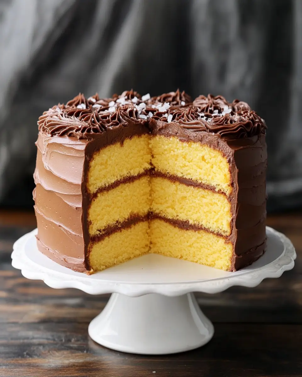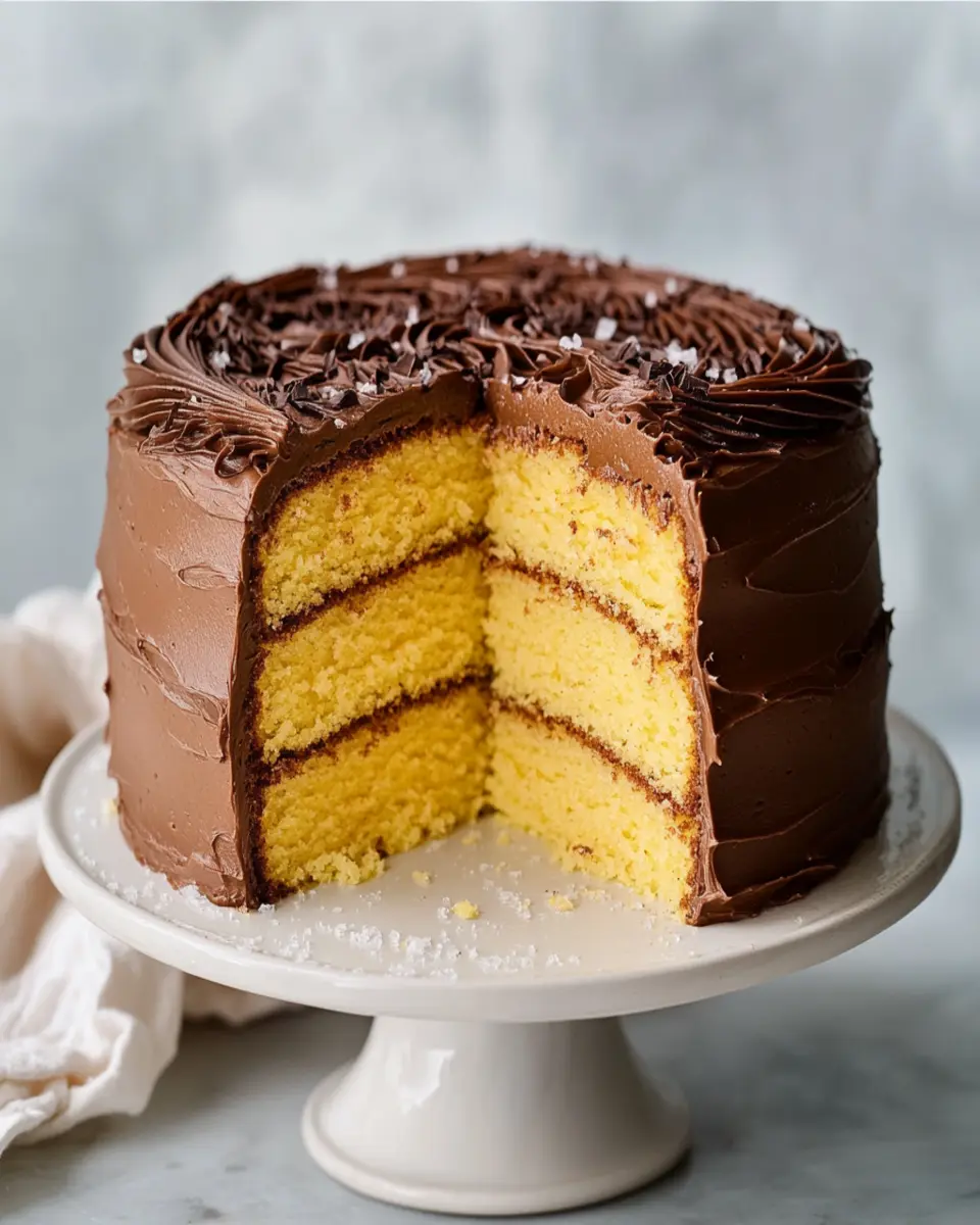 This delightful cake is not just a treat for the taste buds; it’s also a feast for the eyes. The vibrant yellow layers contrast beautifully with the dark chocolate frosting, creating an enticing presentation. Perfect for young professionals who appreciate homemade food, this cake is both simple to make and incredibly satisfying. Imagine slicing into a beautifully baked cake, revealing its moist interior, and savoring the first bite—pure bliss!